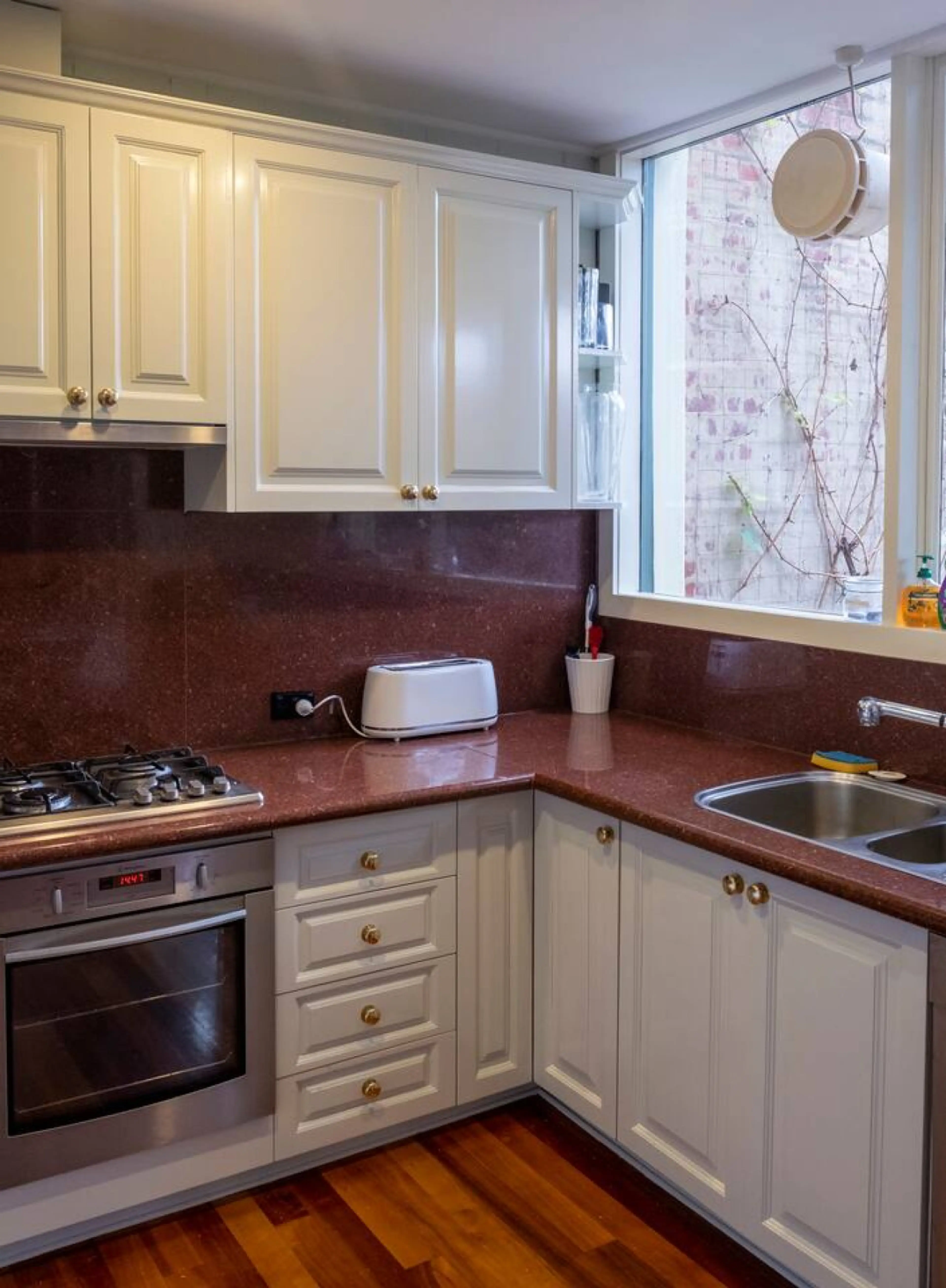 Our home has a large living area which gets plenty of light and looks out over our lovely garden. The bedrooms are generous, each with a desk. The master has a private balcony and ensuite bathroom with walk-in shower and spa bath. The third bedroom can be set up with 2 singles or with a King size...
